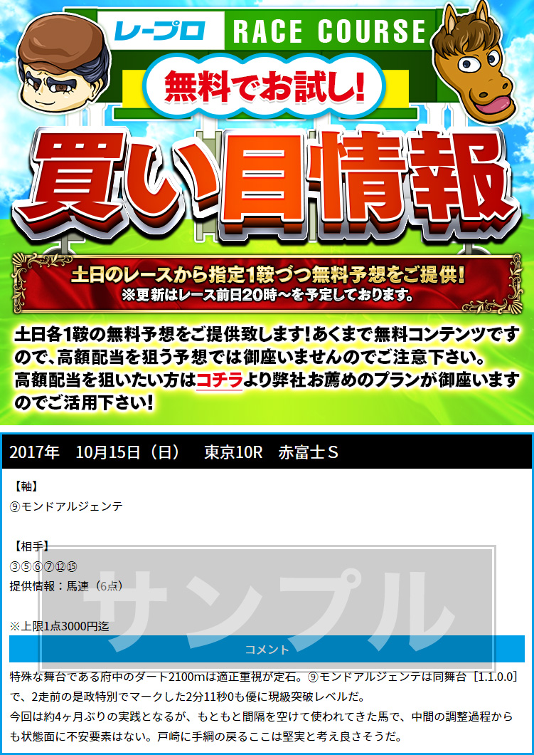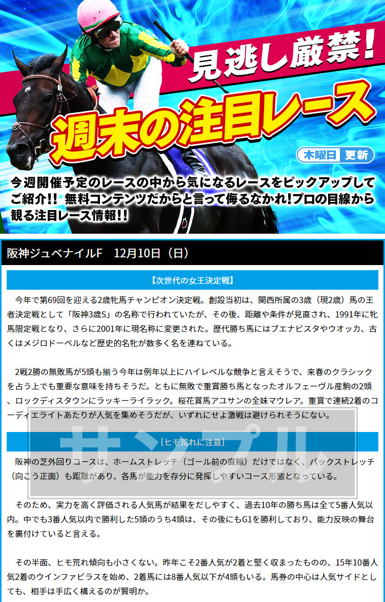 各曜日1鞍づつ、無料予想をお届けしてます!